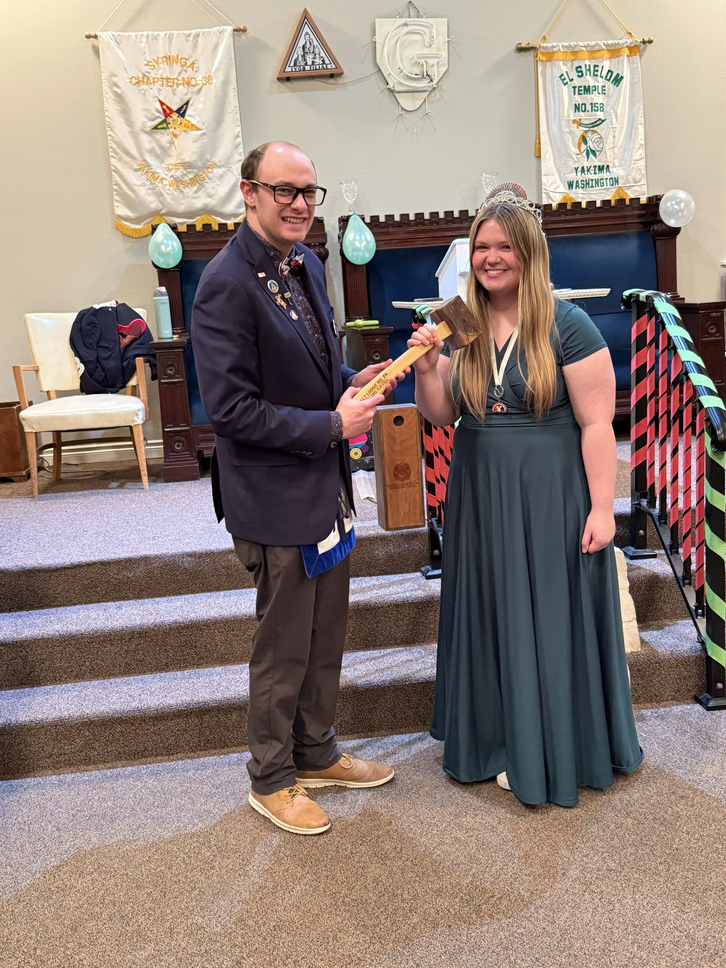 On February 2nd, WM Ellery traveled closer to home to Yakima Rainbow Assembly #1 Installation of Officers, where the Traveling Gavel was used by new Worthy Advisor Emily